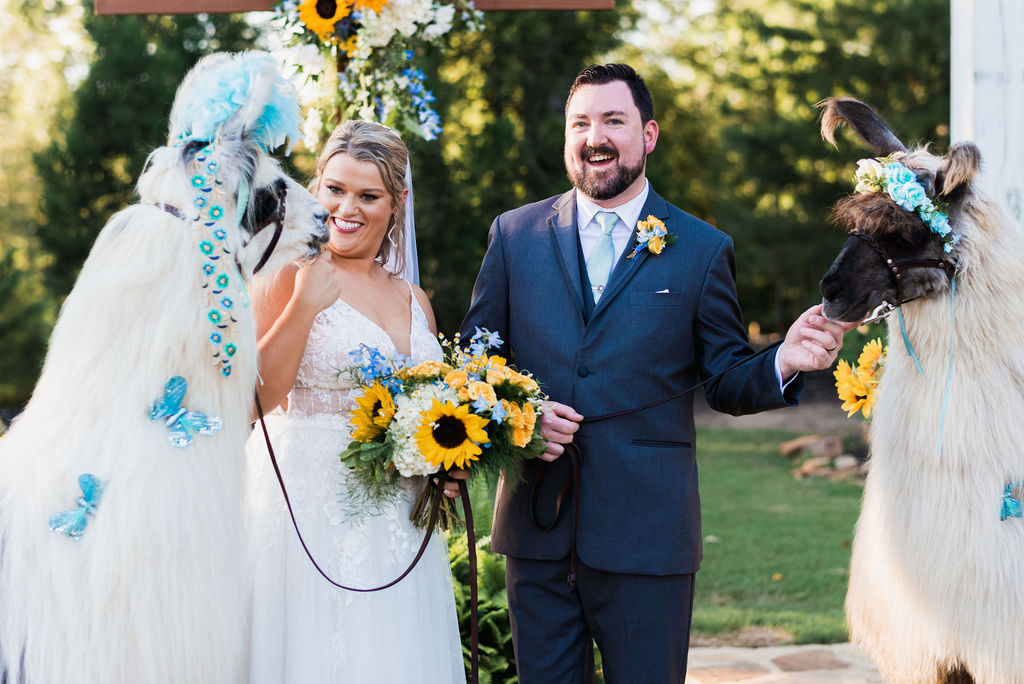 Home › Photo Gallery › Summer Weddings at Our Rustic Georgia Venue › Llama Wedding Portrait